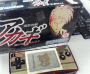 仕事ほったらかしで、遊びに行ったツケが回ってきたようです。自分で自分の首を絞めてみました(キュキュっとね)。さらに、ものっそ今更なネタでアレですが、先日GBミクロ購入しまして…GBAのアカギゲームに夢中とか云う命知らずな、ここ最近のオイラです。仕事しろ。